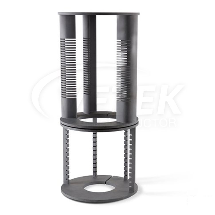 高純粋な炭化物ウェーハキャリアは、拡散、RTP、サーマルフィールドなどの複雑なプロセスで重要な役割を果たし、ウェーハの安定したキャリアとして機能し、異なる機器とステージ間のシームレスな転送を実現します。その垂直構造は、プロセスチャンバーの床面積を最小限に抑え、生産スループットを最適化し、ウェーハの大きなバッチを効率的に処理できます。高純粋な炭化物ウェーハキャリアは、潜在的な損傷からウェーハを保護するための高温、腐食、および機械的強度に対する優れた耐性で知られています。