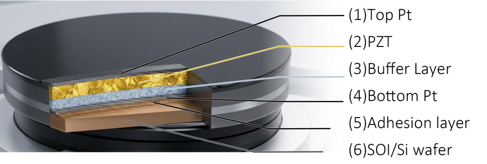 多層スタックの完全性は、強誘電体の性能の基礎です。当社のウェーハは、精密に設計された金属電極とセラミック薄膜のスタックを利用しています。